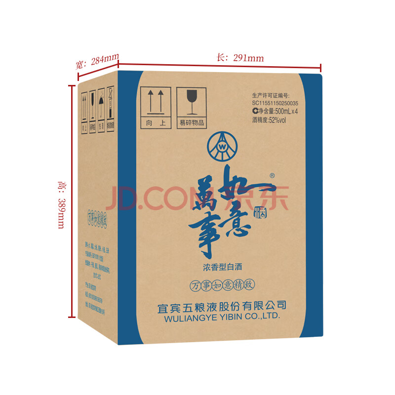 商品相册:五粮液股份 送礼佳品 万事如意精致皮盒52度500ml*4瓶整箱 纯粮白酒礼盒第