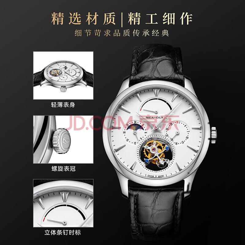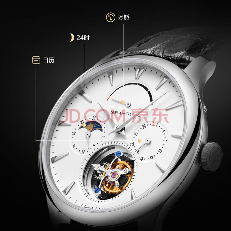 商品相册:海鸥(SEAGULL)手表男士陀飞轮机械表 男士手表日历势能24时鳄鱼皮带男表8828第