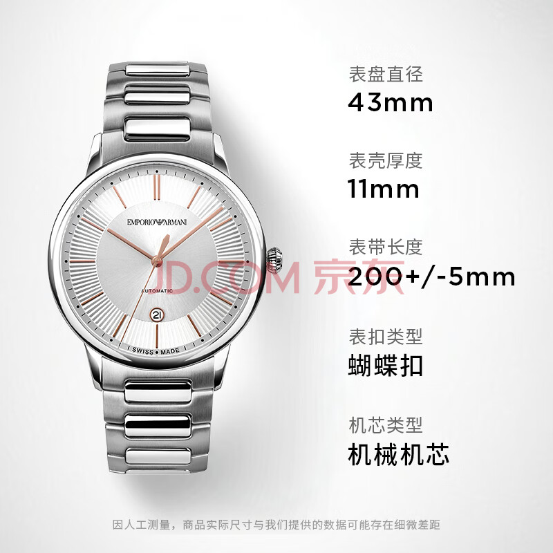 商品相册:EMPORIO ARMANI阿玛尼手表男士 简约商务瑞士机械表钢带生日礼物送男友ARS5104第