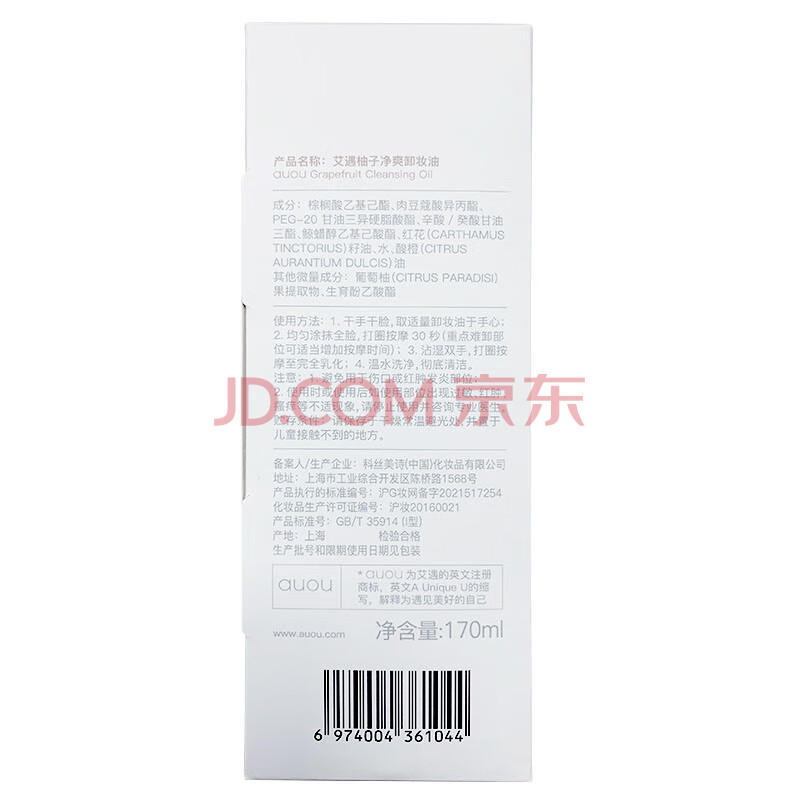 商品相册:艾遇(AUOU)柚子卸妆油女深层清洁眼唇三合一温和不刺激170ml第