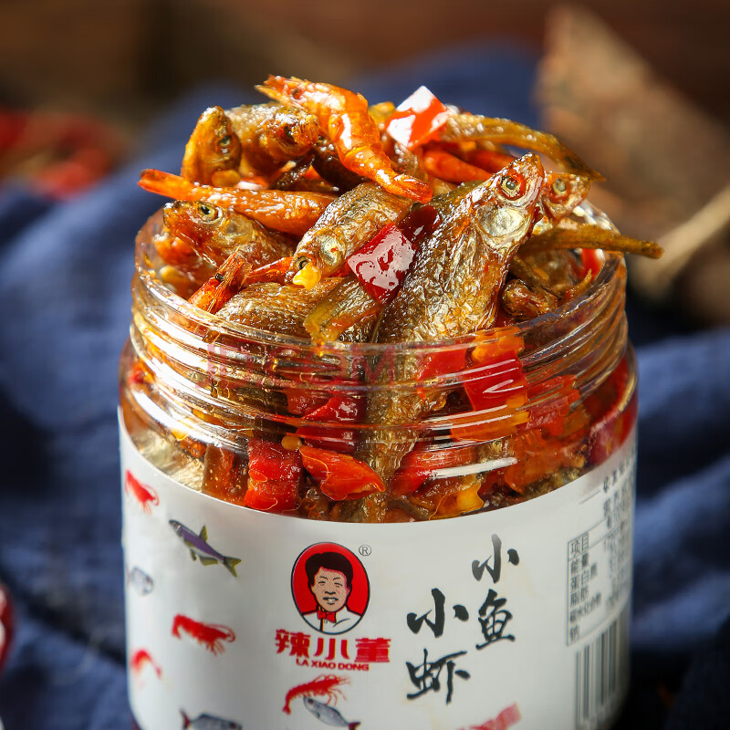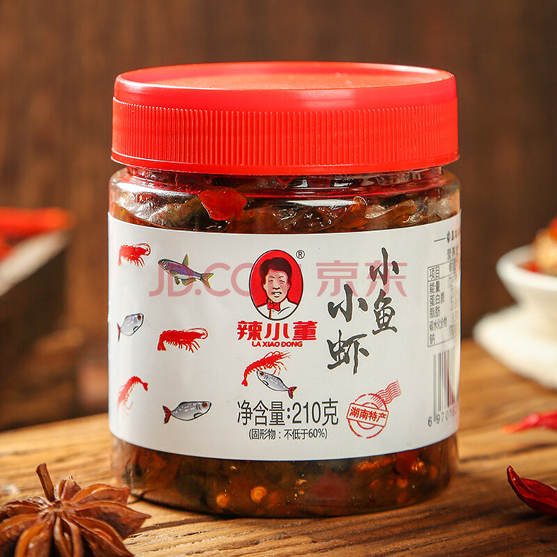 商品相册:辣小董小鱼小虾210g 香辣鱼仔 虾仔酱 零食 毛毛鱼干 即食下饭菜 酱菜第
