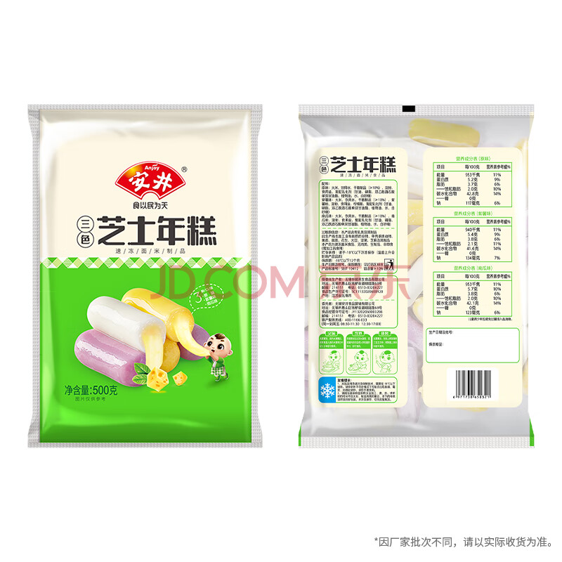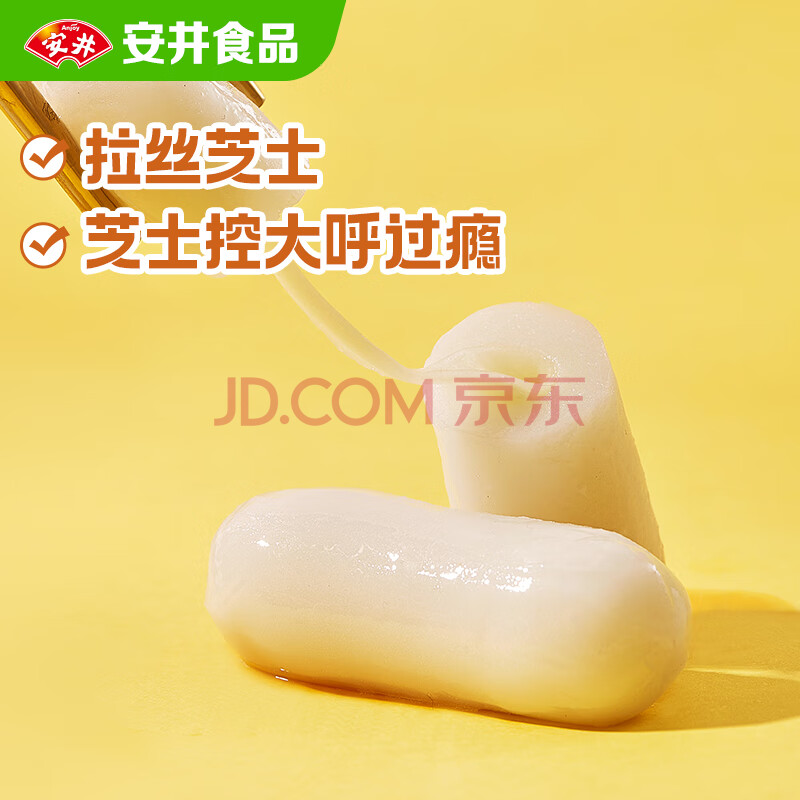 商品相册:安井三色芝士年糕 500g 1包 约40个 夹心拉丝年糕条 韩国部队火锅第