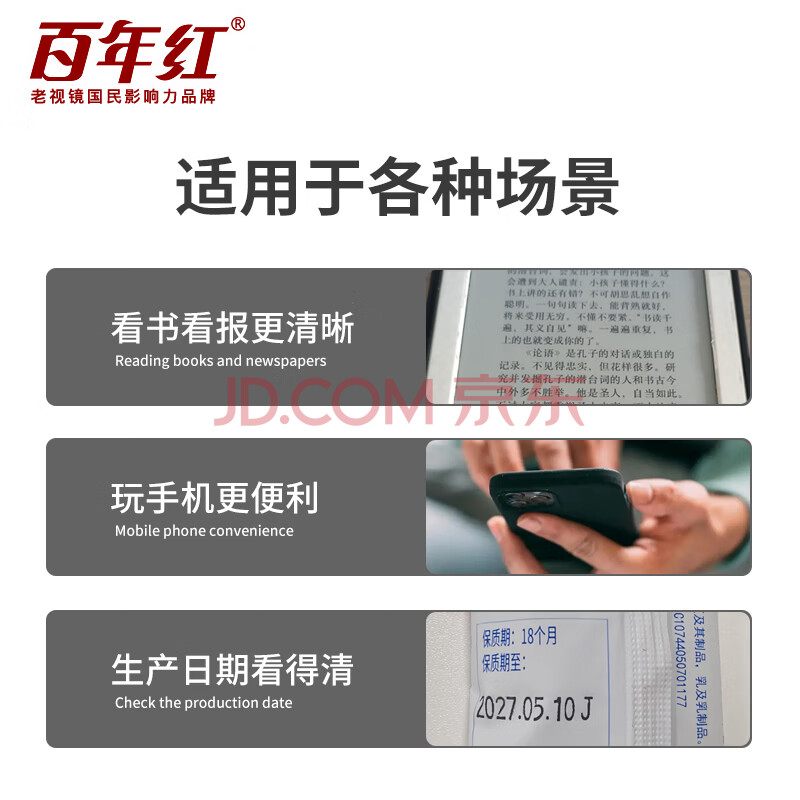商品相册:百年红(BAINIANHONG)护目老花镜男士正品防蓝光老花眼镜高清晰显年轻眼镜2018-200第