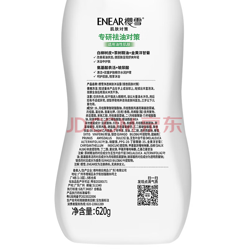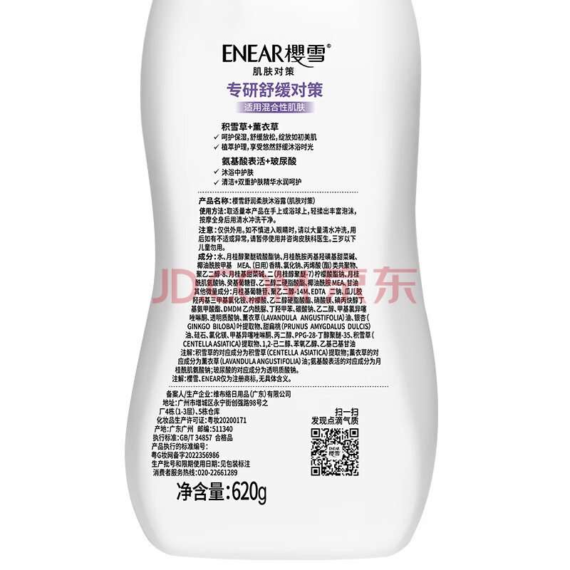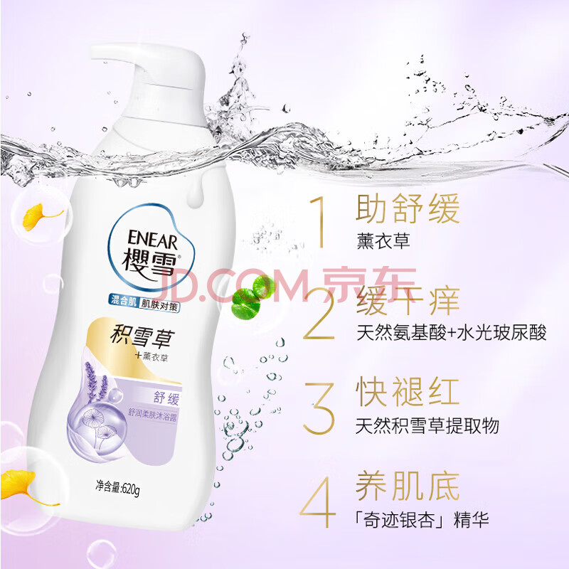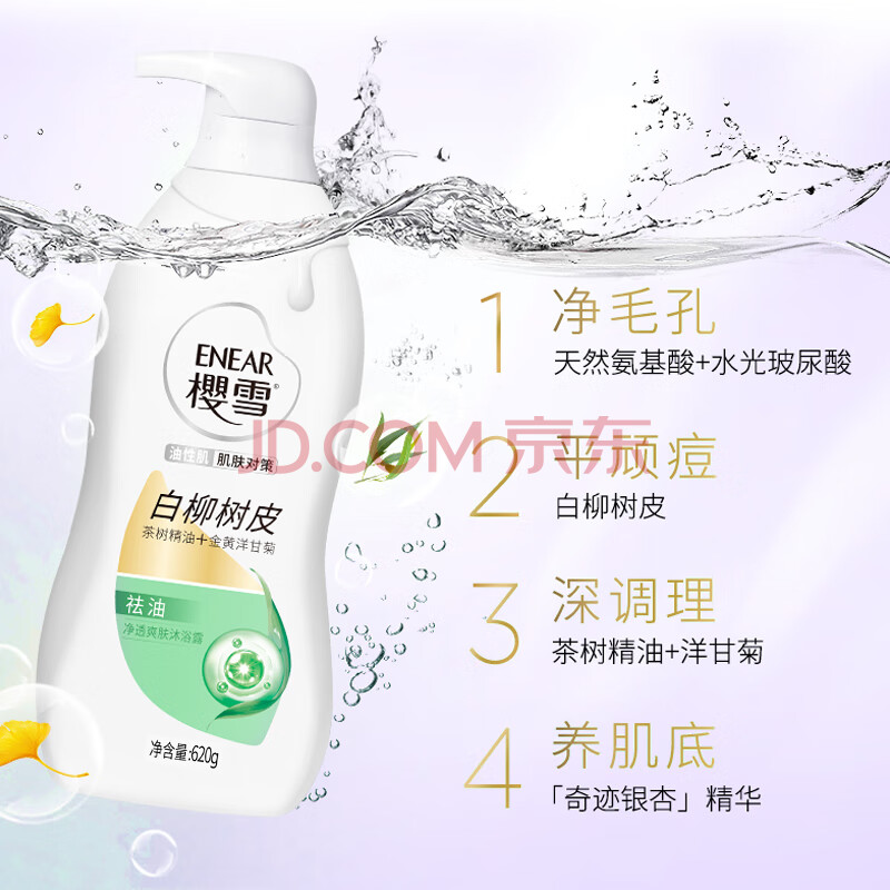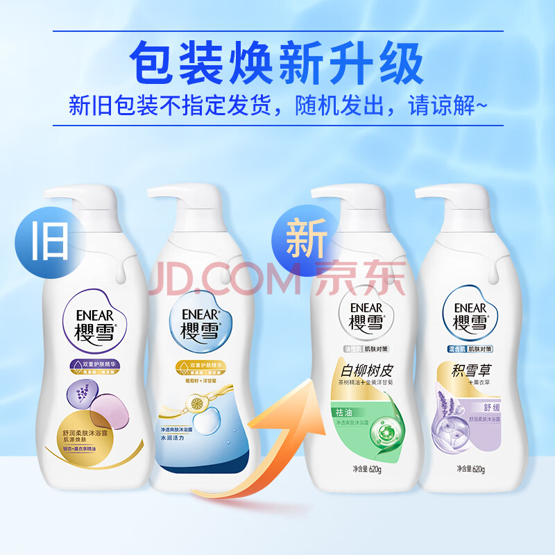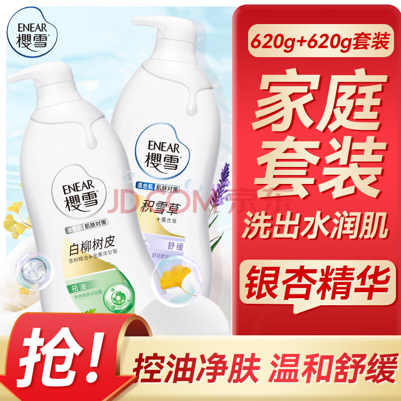 商品相册:樱雪(ENEAR)沐浴露套装 舒润620g+净透爽肤620g沐浴乳持久留香保湿修护 第