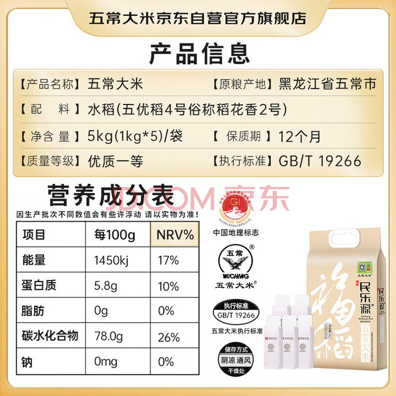 商品相册:五常大米官方溯源民乐源优质五常大米10斤(2斤*5)原粮稻花香2号有机新米第
