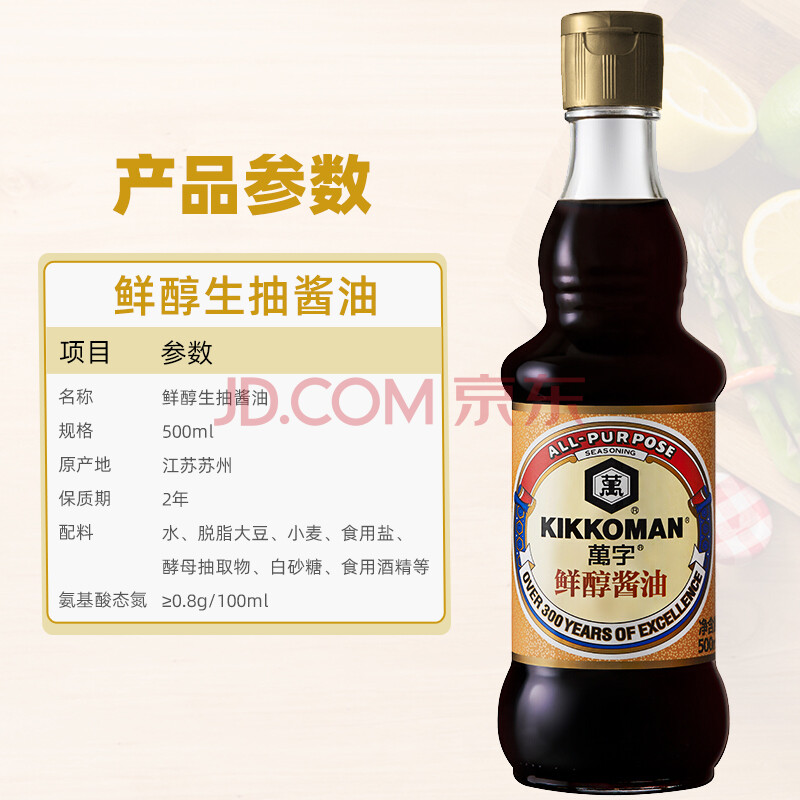 商品相册:万字鲜醇生抽酱油500ml【特级酱油】 0防腐剂0色素调味炒菜凉拌龟甲万第