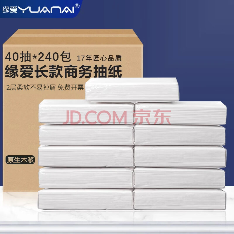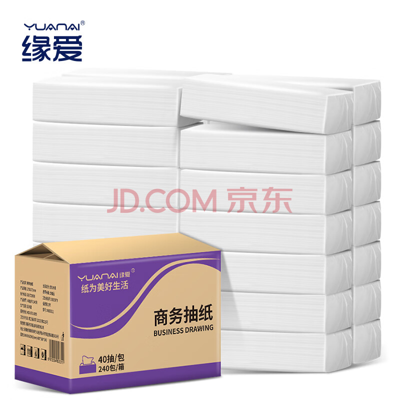 商品相册:缘爱商用抽纸 2层40抽*240包 餐巾纸酒店宾馆商务用抽取式面巾纸整箱第