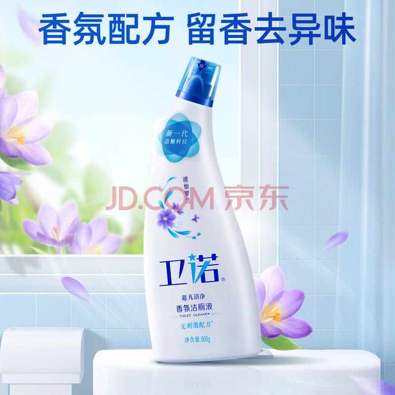 商品相册:卫诺 蓝月亮香氛洁厕液500g*4(清怡罗兰) 除菌洁厕灵马桶清洁剂第