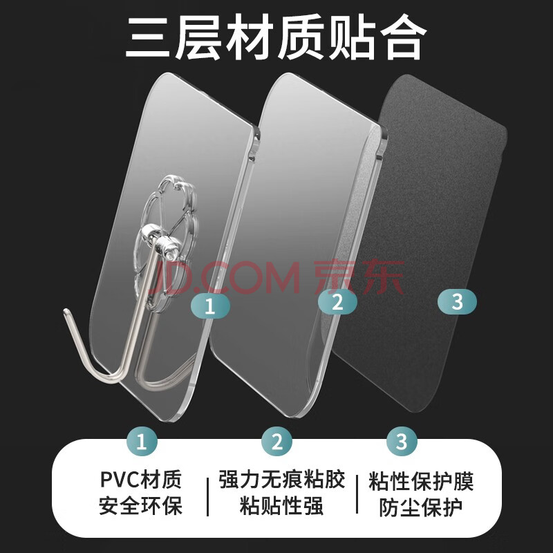 商品相册:秉优挂钩 粘钩30枚 强力无痕免打孔加厚免钉挂钩贴门后挂衣钩 (50丝)第