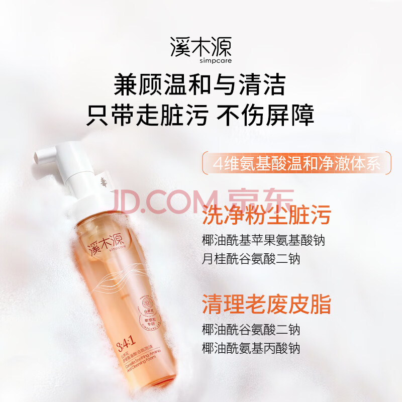 商品相册:溪木源山茶花洁面泡沫氨基酸洗面奶敏感肌护肤青少年学生温和清洁洁面第