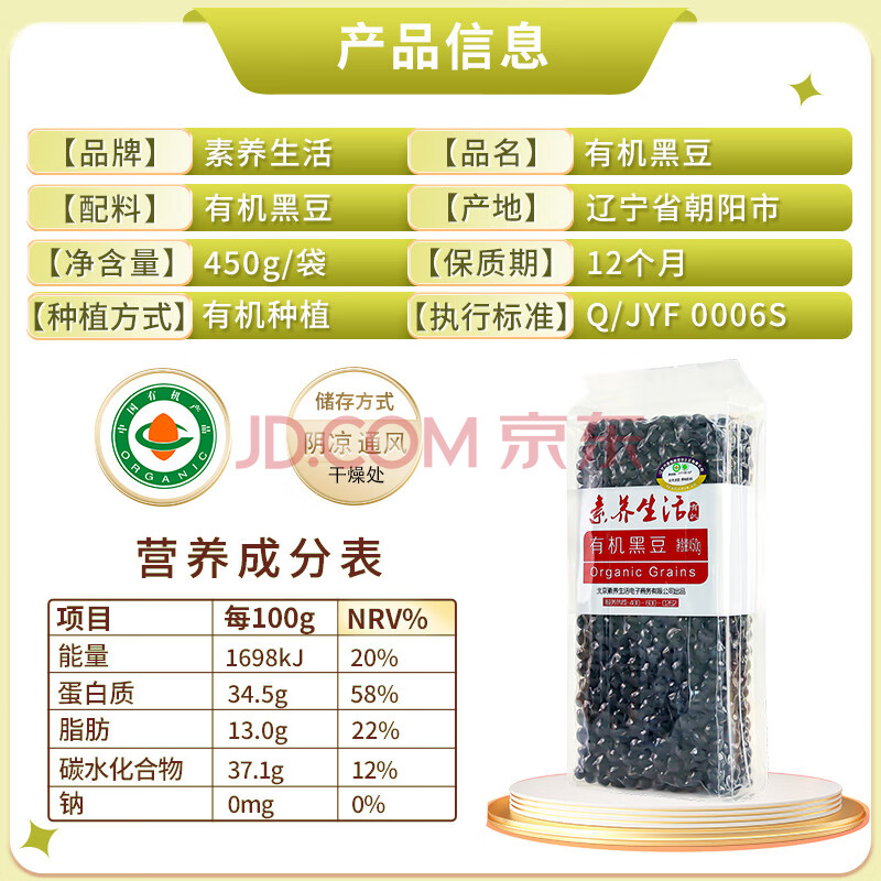 商品相册:素养生活有机黑豆450g 黑大豆 东北黑豆 杂粮豆 粗粮 打豆浆 无染色第