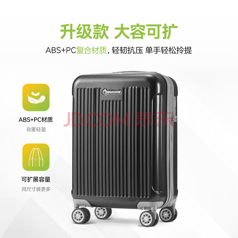 商品相册:Diplomat外交官行李箱20英寸扩充层拉杆箱男登机旅行密码箱女TC-6012TM黑第