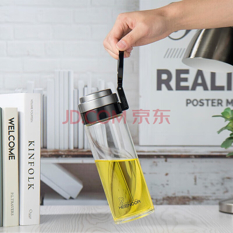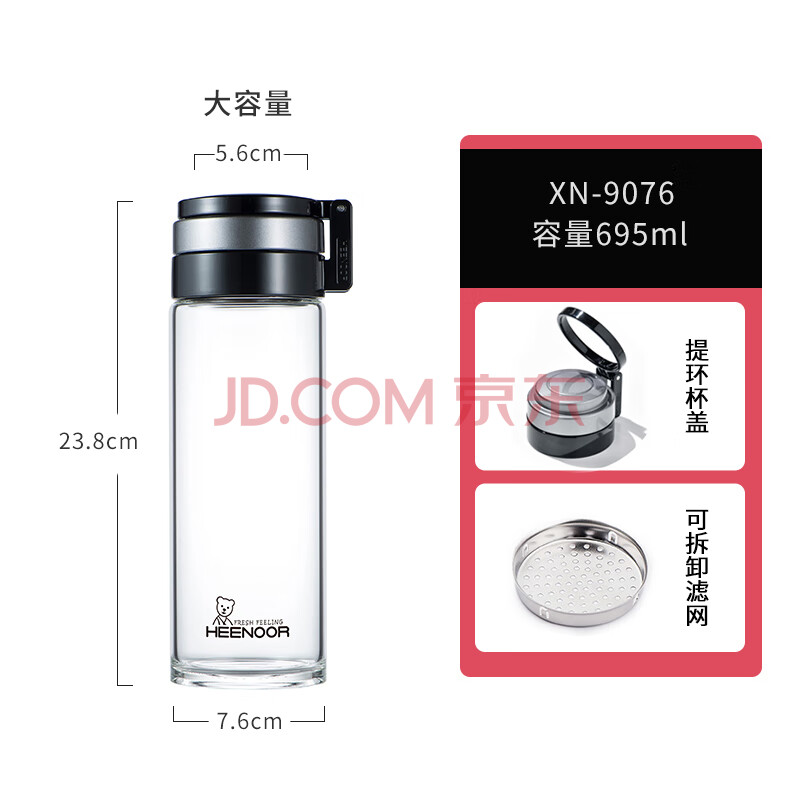 商品相册:希诺单层玻璃杯大容量便携提环运动水杯男过滤泡茶杯子XN-9076 695mL第
