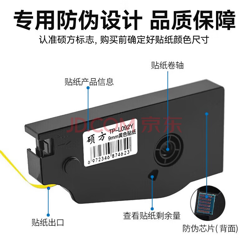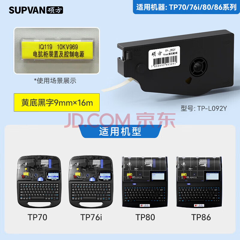 商品相册:硕方线号机贴纸TP70/TP76/TP80/TP86打号机打码机标签机打印不干胶贴纸 9mm黄色 TP-L092Y第