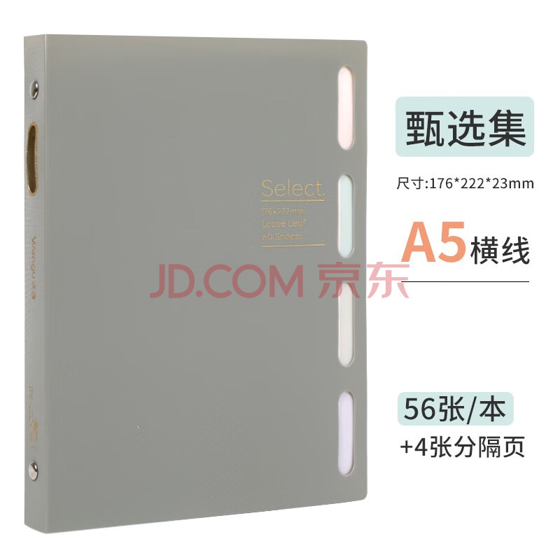 商品相册:文谷(Wengu)笔记本子活页本 a5/60张简约镂空活页可拆卸横线本20孔记事本子小初高学生专用文具 B0191(A5)灰色第