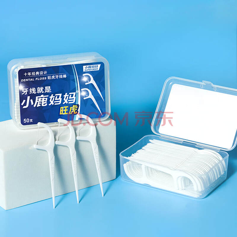 商品相册:小鹿妈妈超细圆线牙线棒 50支*3盒装共150支细滑清洁齿缝牙线棒 第