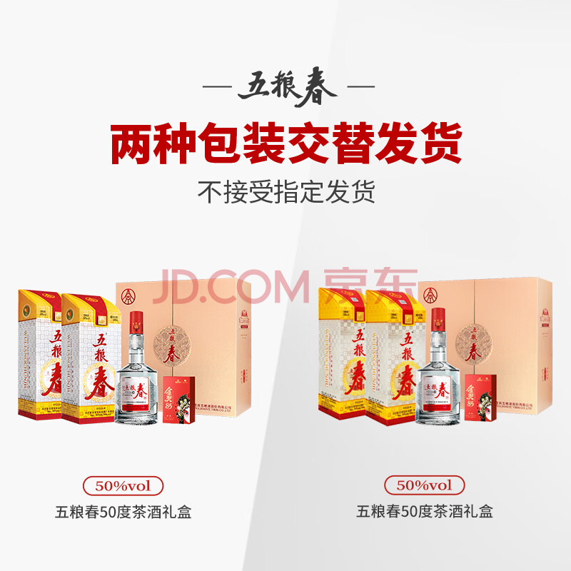 商品相册:五粮液五粮春第一代浓香型白酒50度500mL*2瓶茶酒礼盒 官方授权 酒第