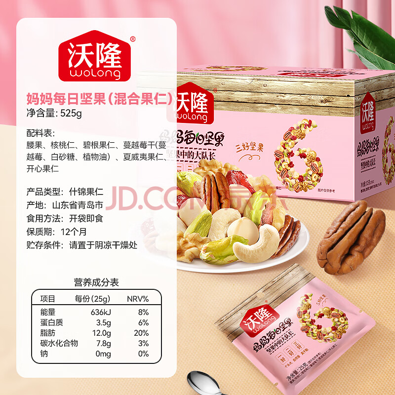 商品相册:沃隆妈妈每日坚果525g/21袋孕妇零食含开心果仁干果孕妈零食大礼包第1张/共7