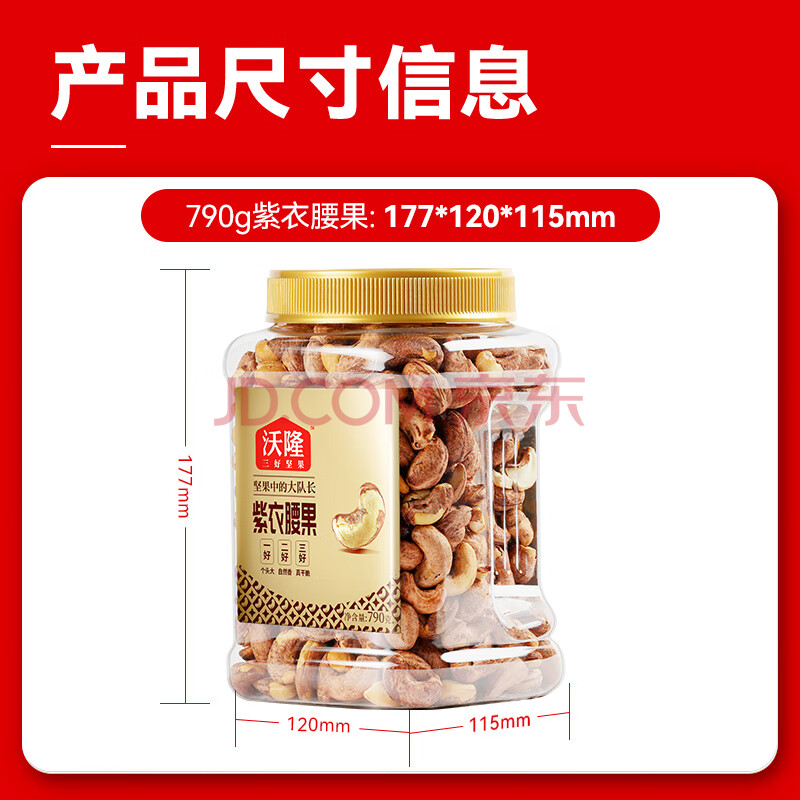 商品相册:沃隆紫皮腰果790g量贩罐装带皮腰果仁干果炒货烘焙零食炭烤大腰果第1张/共7