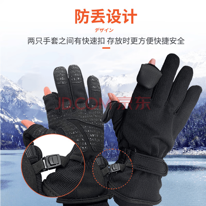 商品相册:景胜景胜 摄影手套冬季户外专用防寒保温防水加厚摄影手套 XL号 黑色第