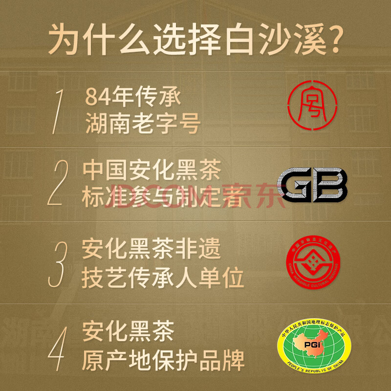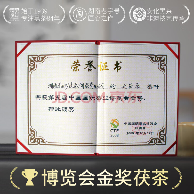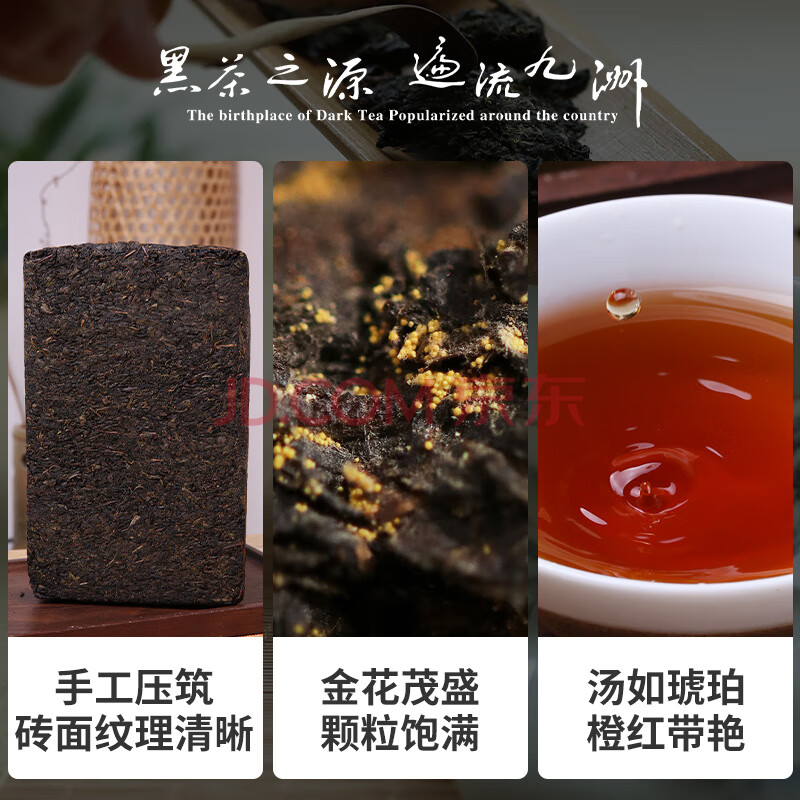 商品相册:白沙溪 安化黑茶 2018年金花茯茶砖茶天尖嫩料天茯茶叶礼盒1000g送礼袋第1张/共7