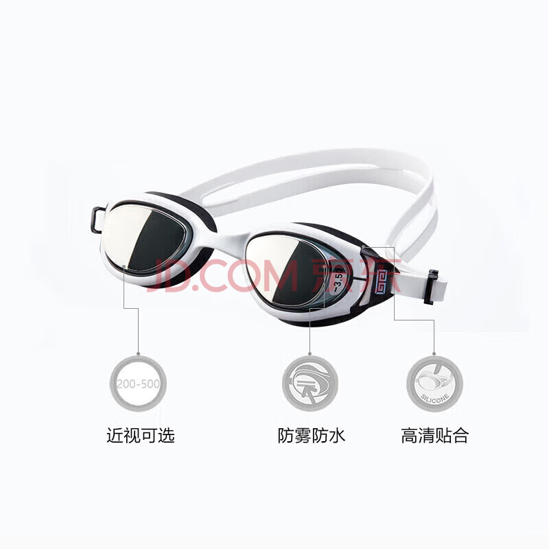 商品相册:范德安(BALNEAIRE)高端时尚近视泳镜高清防雾防水男女平光专业500°白黑第