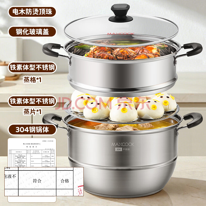 商品相册:美厨(maxcook)304不锈钢蒸锅32CM 二层复底 燃气炉电磁炉通用MCZ9842第