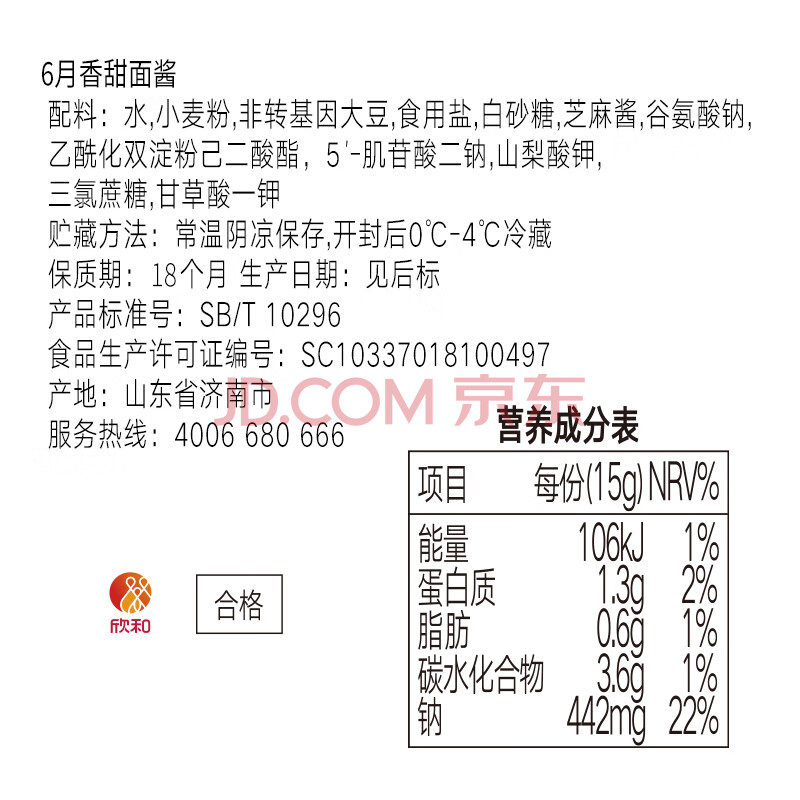 商品相册:葱伴侣六月香甜面酱800g 0%添加黄原胶 炒菜焖炖蘸调味酱 欣和出品第