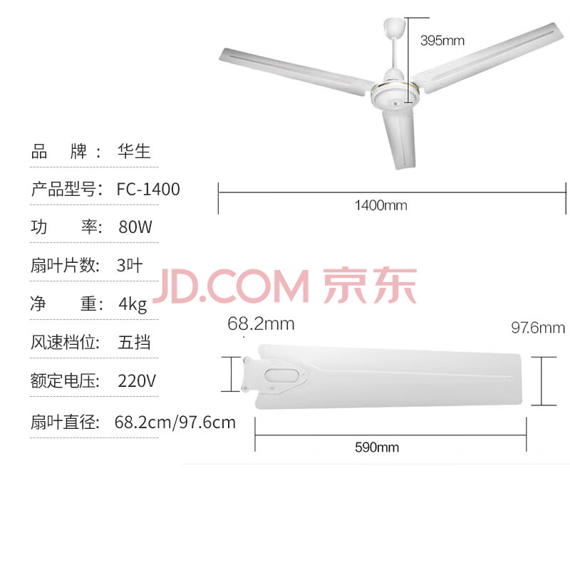 商品相册:华生(Wahson)吊扇/电风扇/大风力宿舍工厂楼顶扇/工业风扇客厅厨房餐厅家用风扇交流定频风扇1.4米 FC-1400第