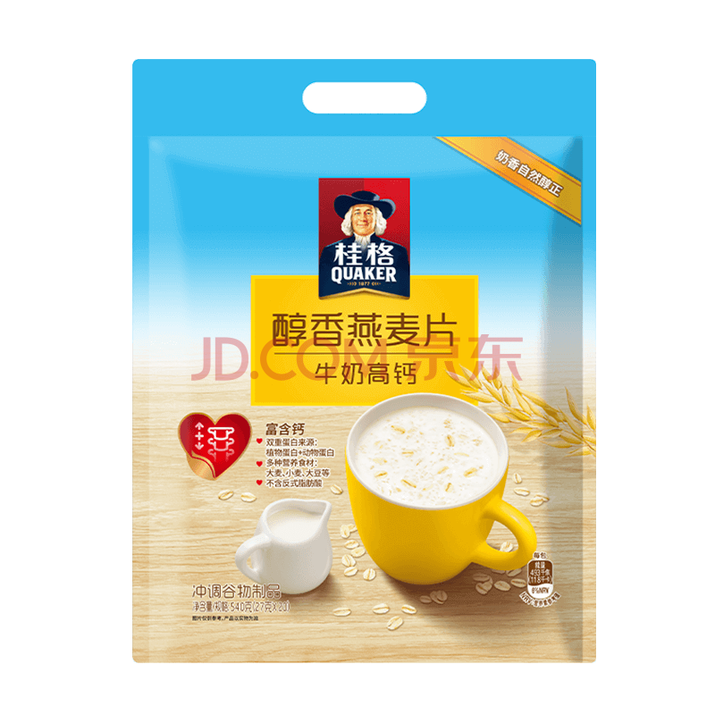 商品相册:桂格(QUAKER)牛奶高钙燕麦片540g(27g*20袋)新西兰进口奶源 营养早餐第