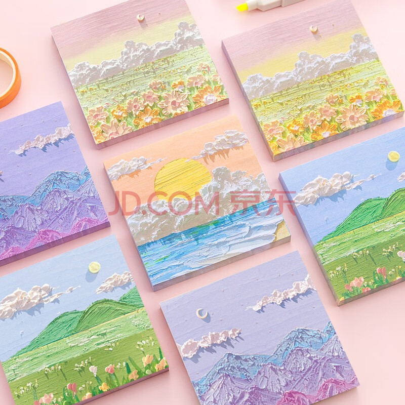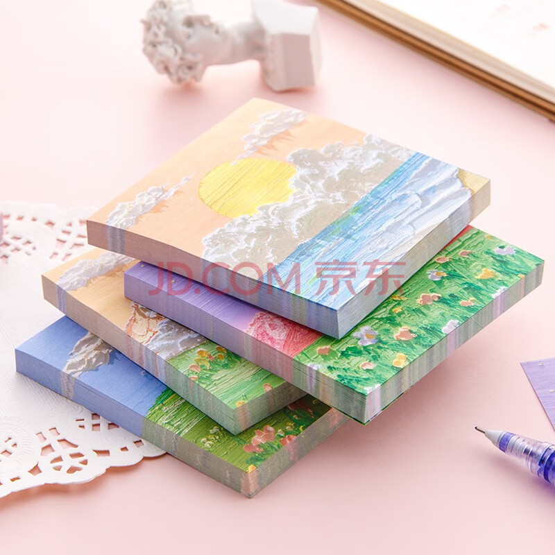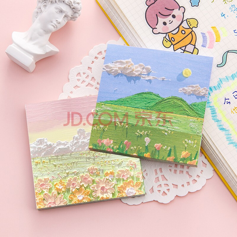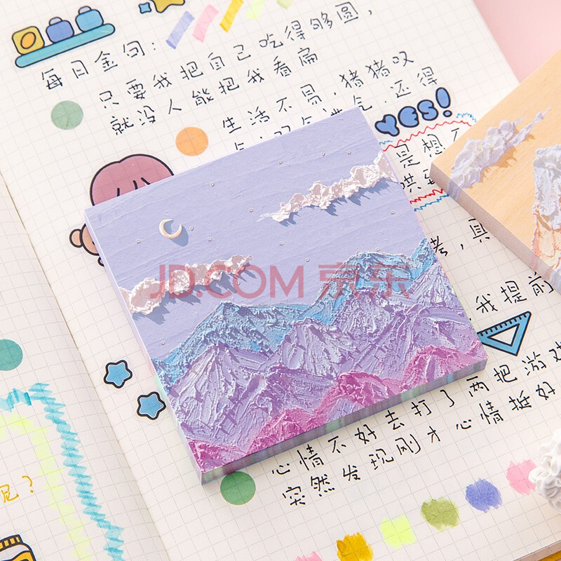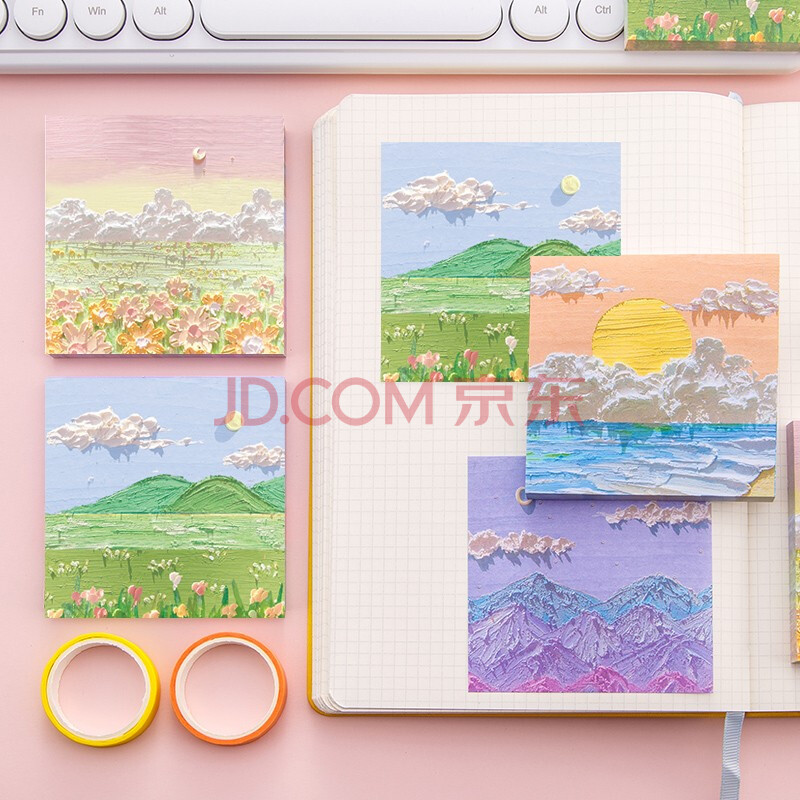 商品相册:誉禾风景油画立体便利贴高颜值手账便签纸有粘性标签贴记事贴学生日系便签本备忘录 4本装 5199第