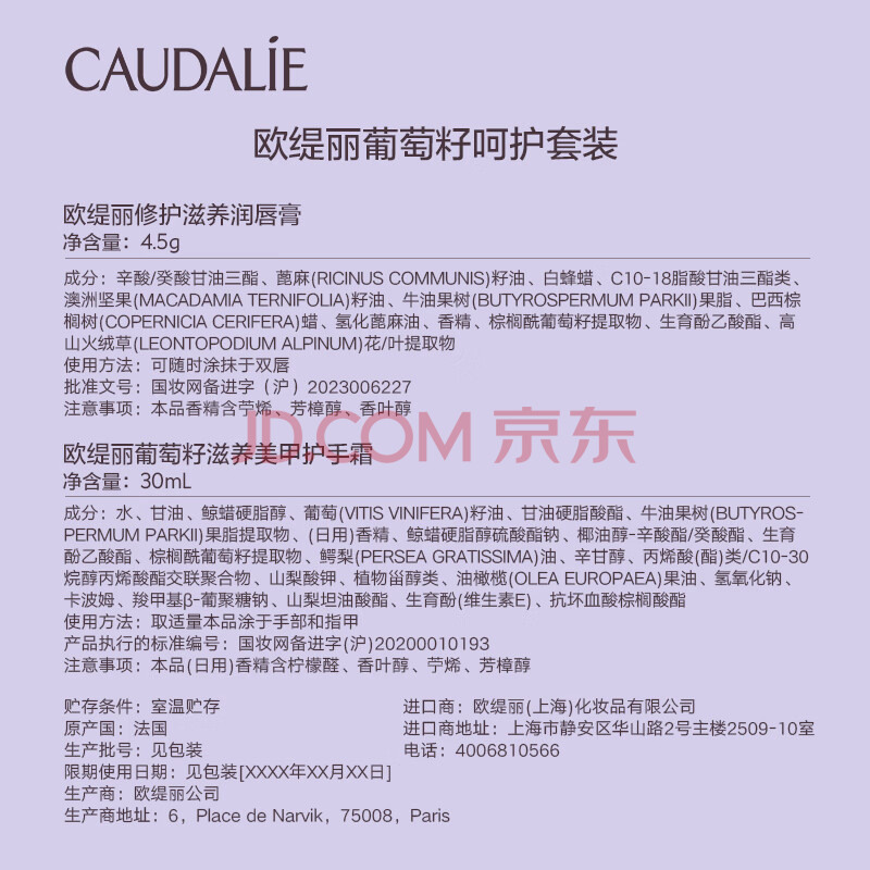 商品相册:欧缇丽葡萄籽呵护套装(护手霜30ML+润唇膏4.5G)滋养保湿温和 生日礼物第