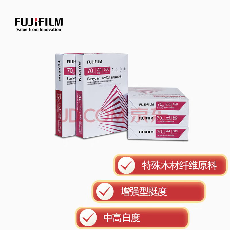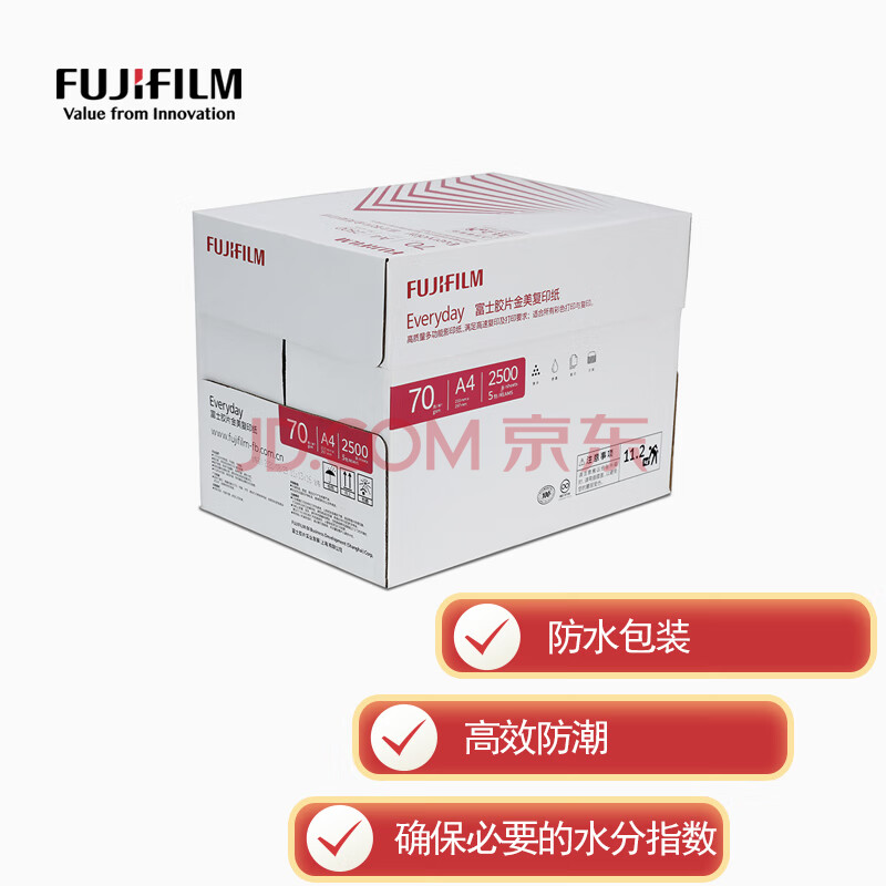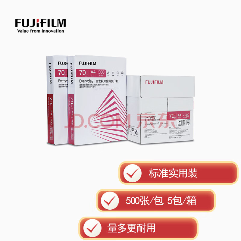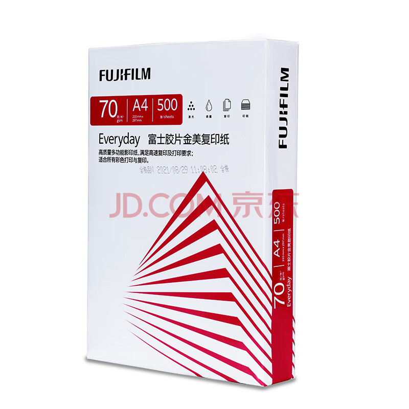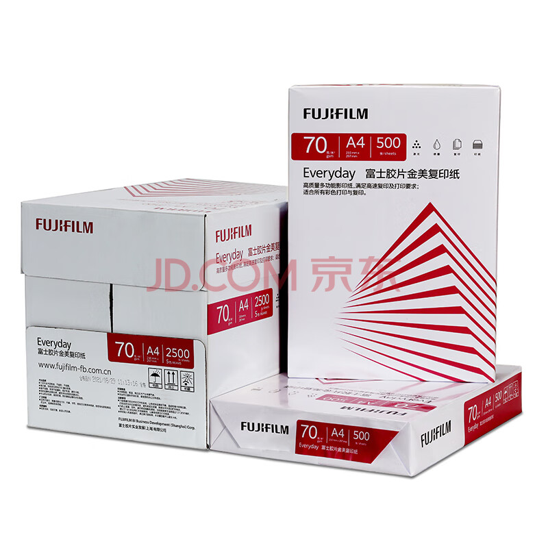 商品相册:富士胶片FUJIFILMEveryday 金美70g A4复印纸 500张/包 5包/箱(2500张) 京东自营 a4纸 打印纸 整箱 白纸第