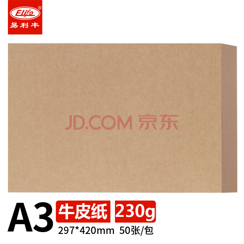商品相册:易利丰(elifo)50张230克a3牛皮纸打印纸牛皮卡纸加厚硬卡纸 凭证封面纸 绘图绘画纸第
