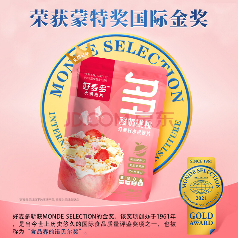 商品相册:好麦多水果燕麦片酸奶桃桃400g营养早餐酸奶麦片即食轻卡零食代餐第