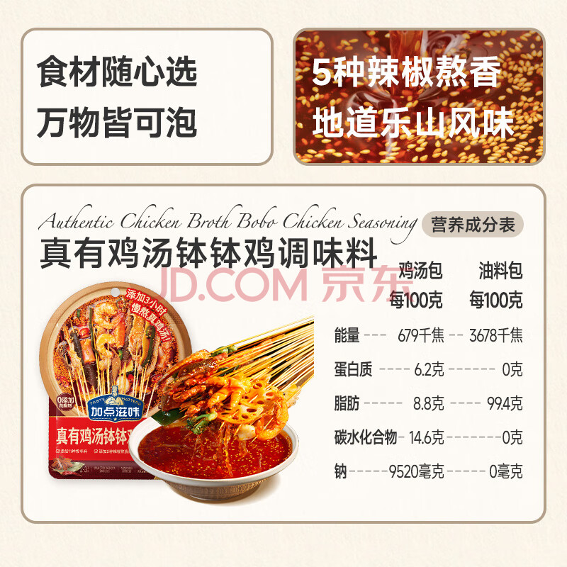 商品相册:加点滋味真有鸡汤钵钵鸡调味料香辣红油味200g【双料包】冷锅串串麻辣烫第