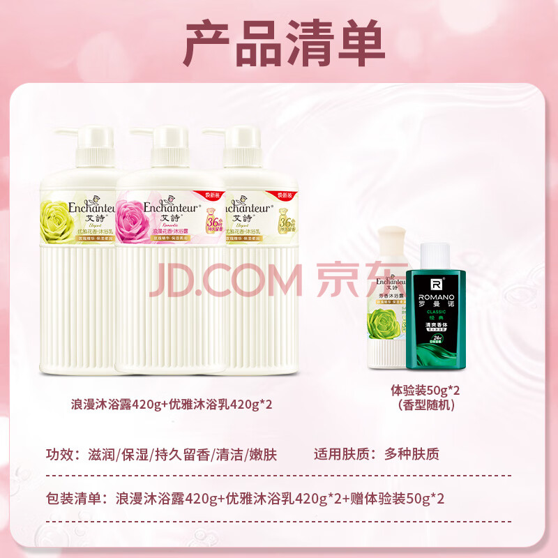 商品相册:艾诗(Enchanteur)沐浴露留香滋润保湿香氛沐浴乳420gl*3瓶第