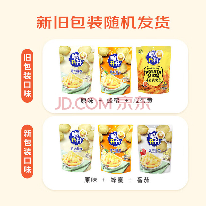 商品相册:脆升升薯条超值分享装300g 三口味休闲零食非膨化(原味+蜂蜜+番茄)第
