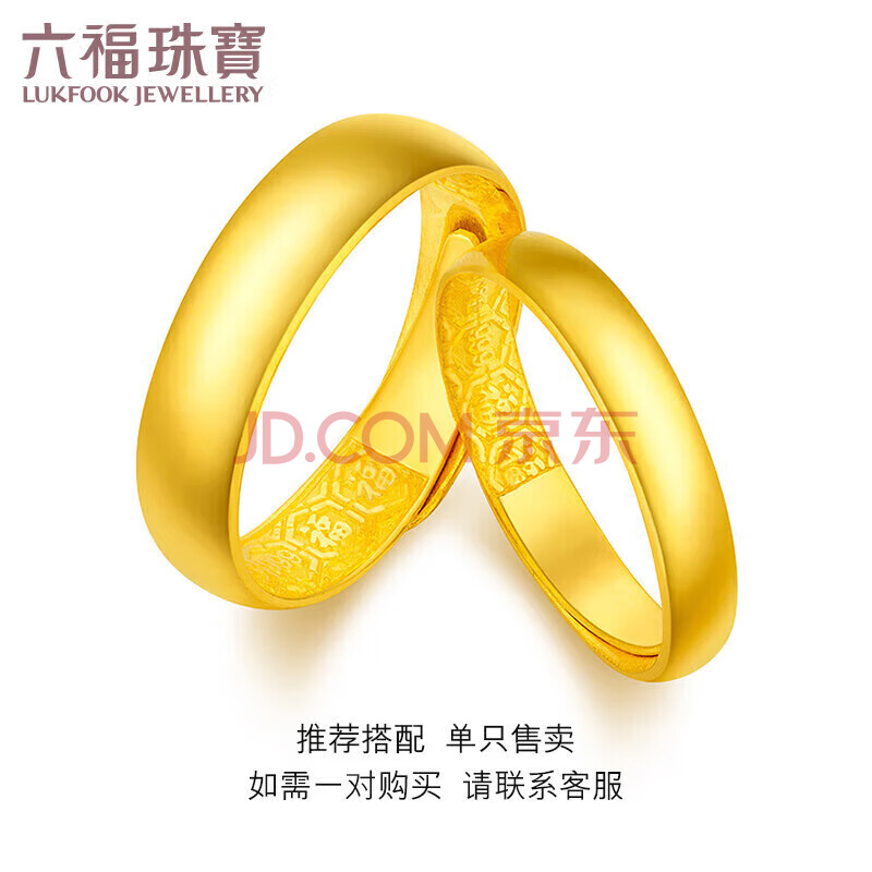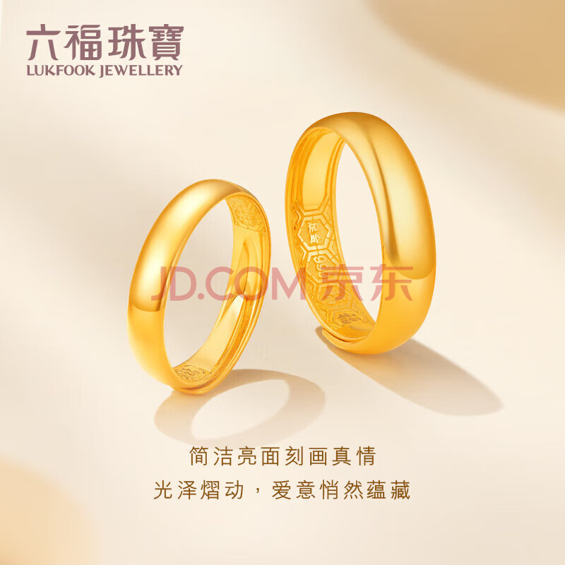 商品相册:六福珠宝 黄金戒指光耀活口实心情侣戒足金男士结婚礼物 计价 约6.91克第