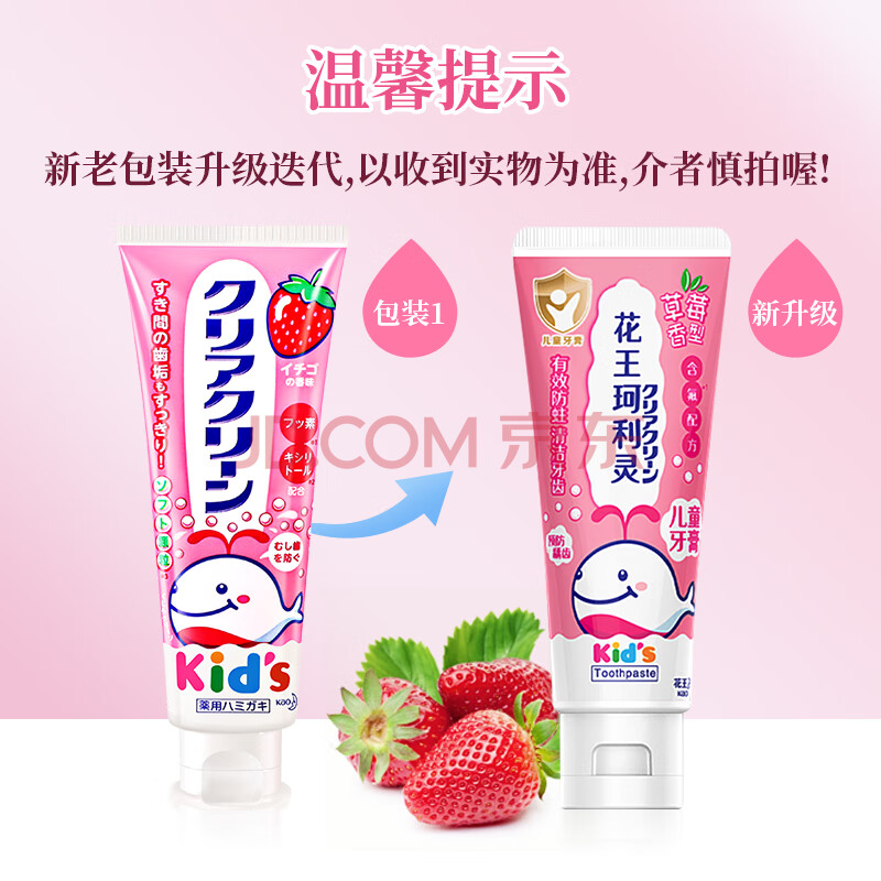 商品相册:花王(KAO)珂利灵儿童牙膏含氟防蛀3-6-12岁木糖醇宝宝牙膏草莓味70g第