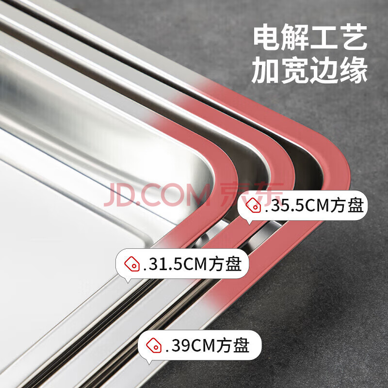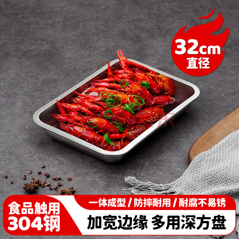 商品相册:美厨(MAXCOOK)304不锈钢盘子方盘 加深方盘长方形餐盘 烧烤托盘32cm MCFT2359第1张/共9