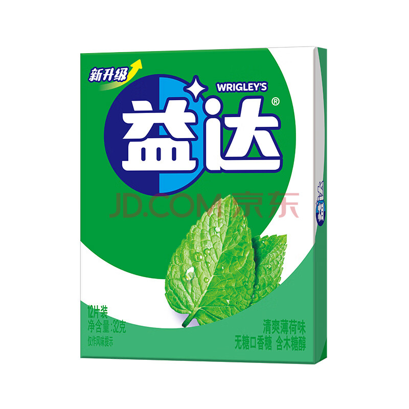 商品相册:益达木糖醇无糖口香糖清爽薄荷味32g/盒12片 口气清新糖 休闲零食糖果第