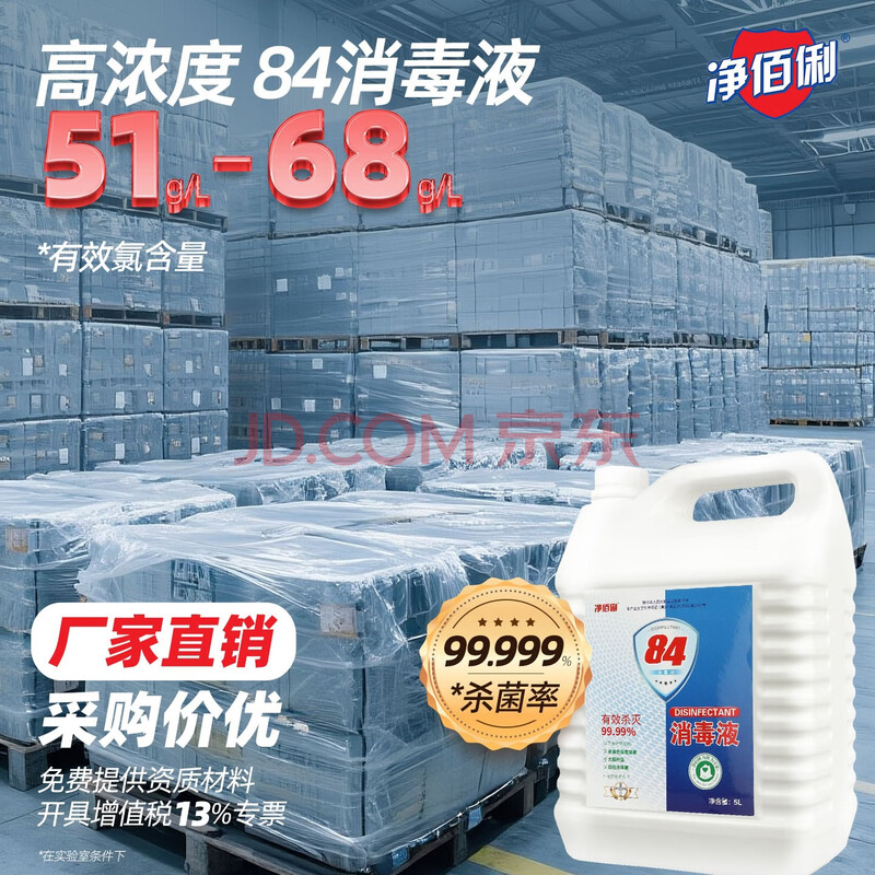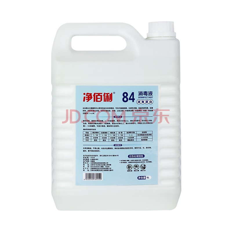 商品相册:净佰俐 84消毒液5L漂白大桶装家用商用八四环境消毒水衣物含氯清洁剂第