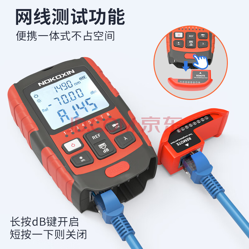 商品相册:诺可信(Nokoxin) 迷你光功率红光一体机高精度迷你光功率计红光笔光纤测试仪网线测试仪4合1锂电款10MW【-70~+6】第
