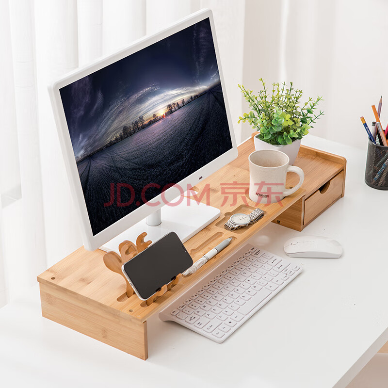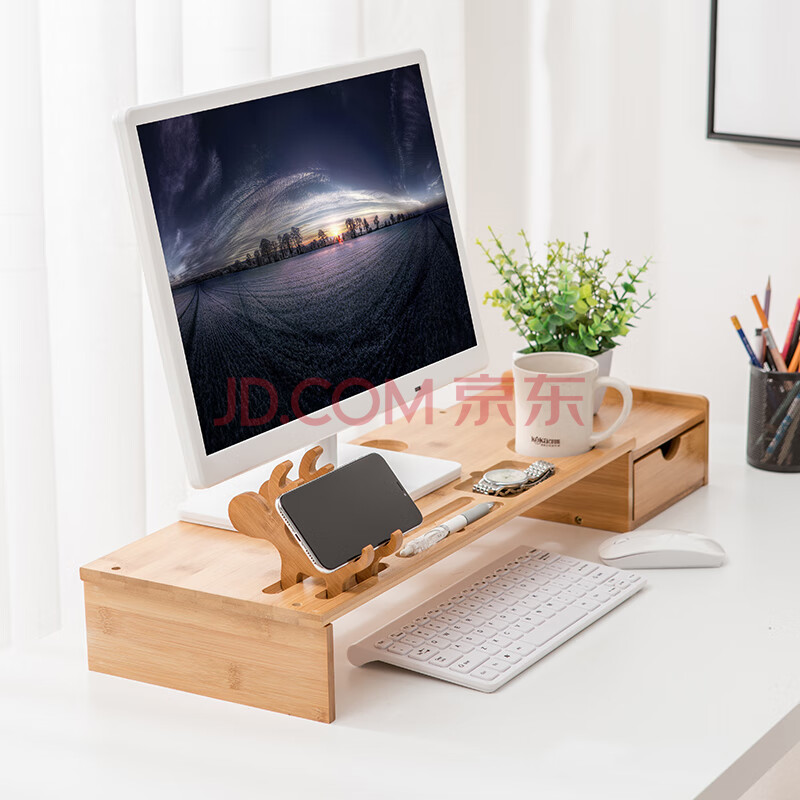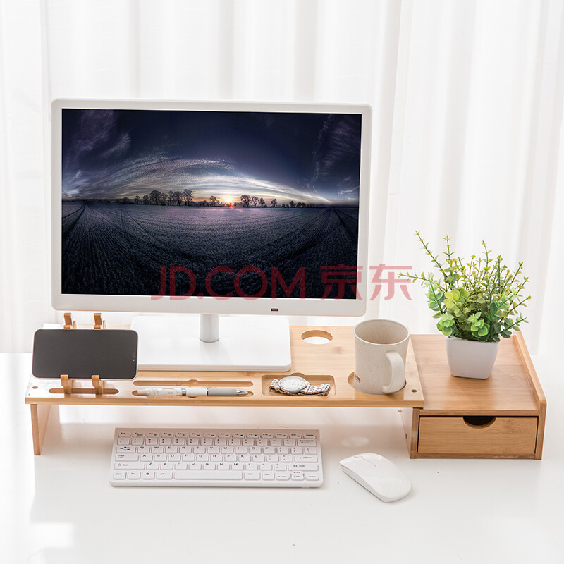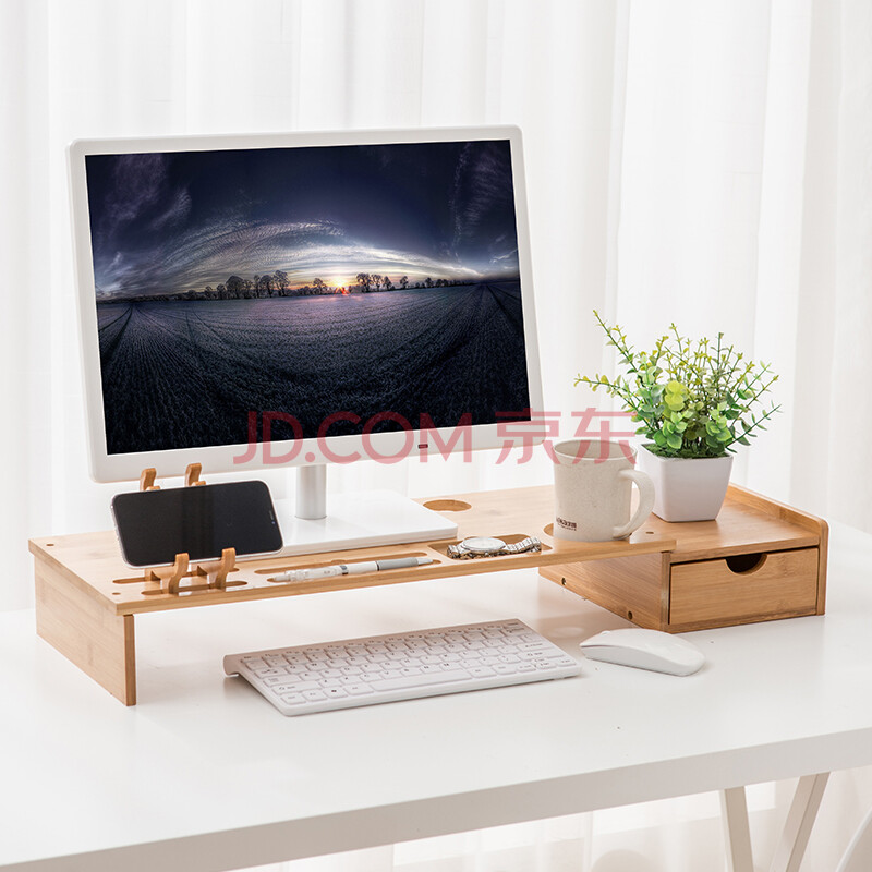 商品相册:倍方(befon)显示器增高架单抽屉键盘收纳笔记本电脑手机支架 置物架台式电脑底座显示器支架73683第