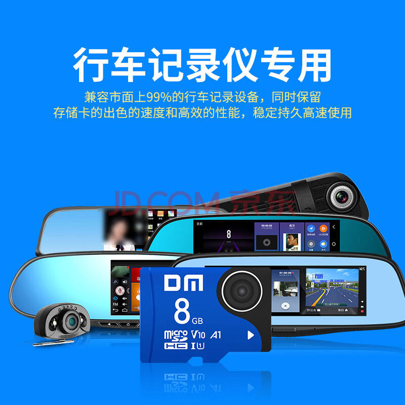 商品相册:DM大迈 8GB TF(MicroSD)存储卡 蓝卡 C10 行车记录仪专用监控摄像头内存卡适用小米360凌度盯盯拍第