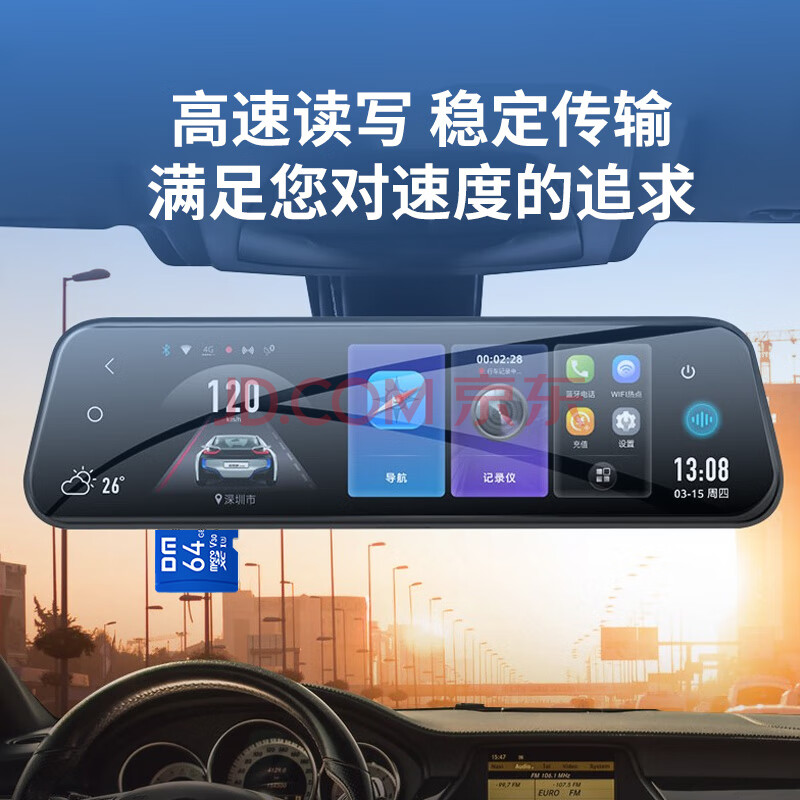 商品相册:DM大迈 64GB TF(MicroSD)存储卡 蓝卡 V30 行车记录仪专用监控摄像头内存卡适用小米360凌度盯盯拍第