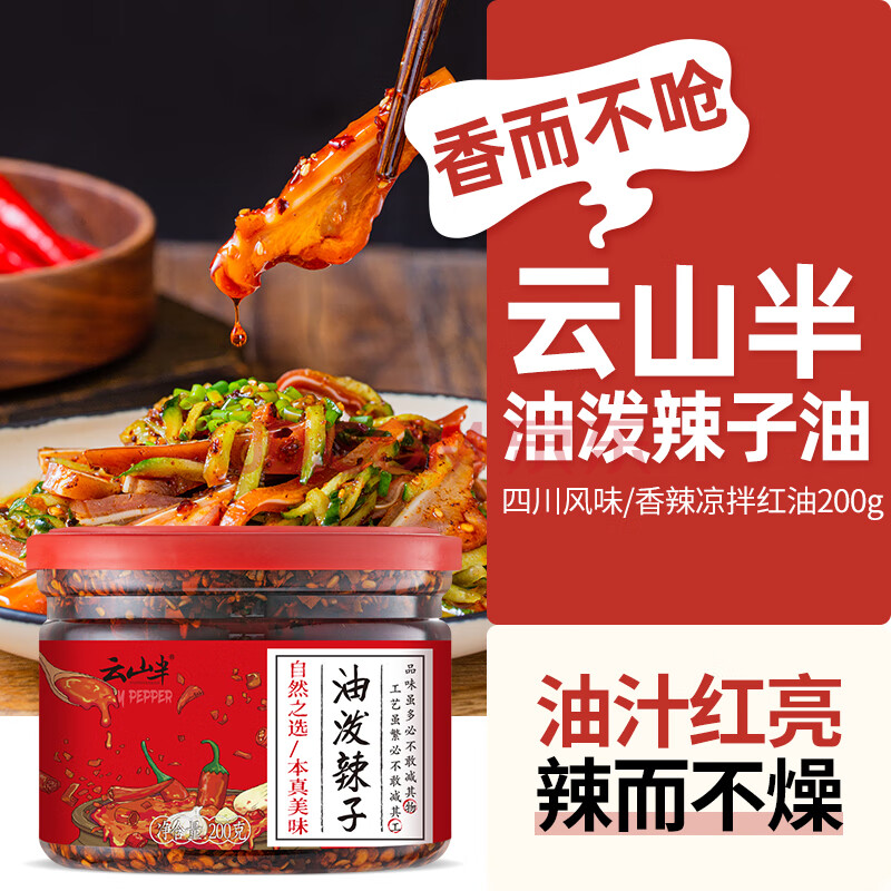 商品相册:云山半辣椒油油泼辣子200g 四川风味油辣子0添加香辣红油辣椒酱凉拌调味第