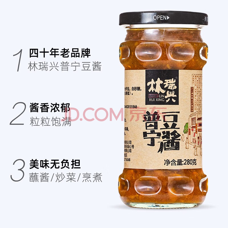 商品相册:林瑞兴 普宁豆酱280g正宗潮汕特产普宁豆瓣酱蘸菜拌饭拌面酱黄豆酱第1张/共7