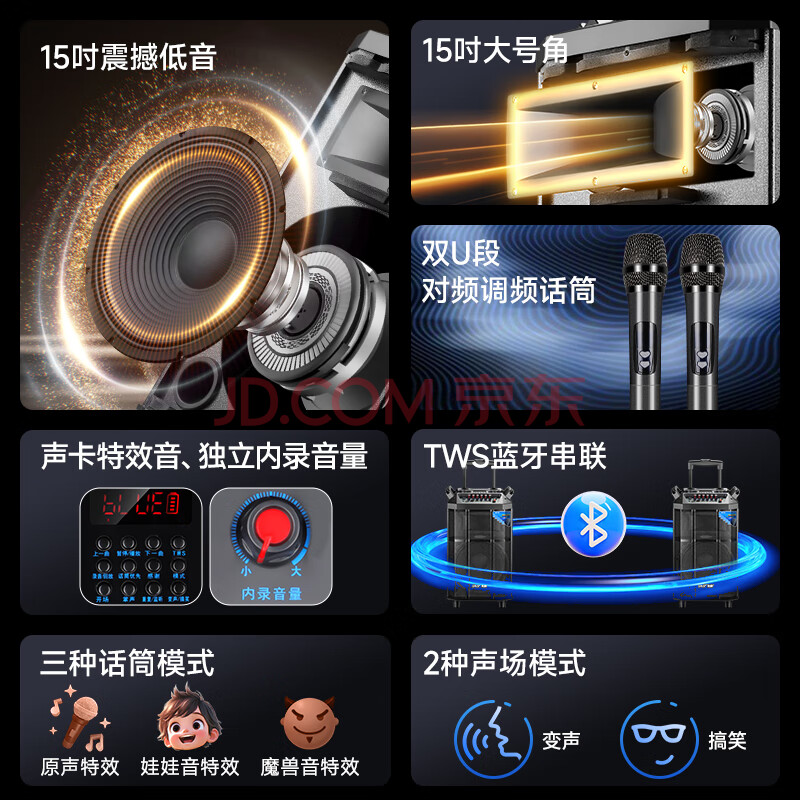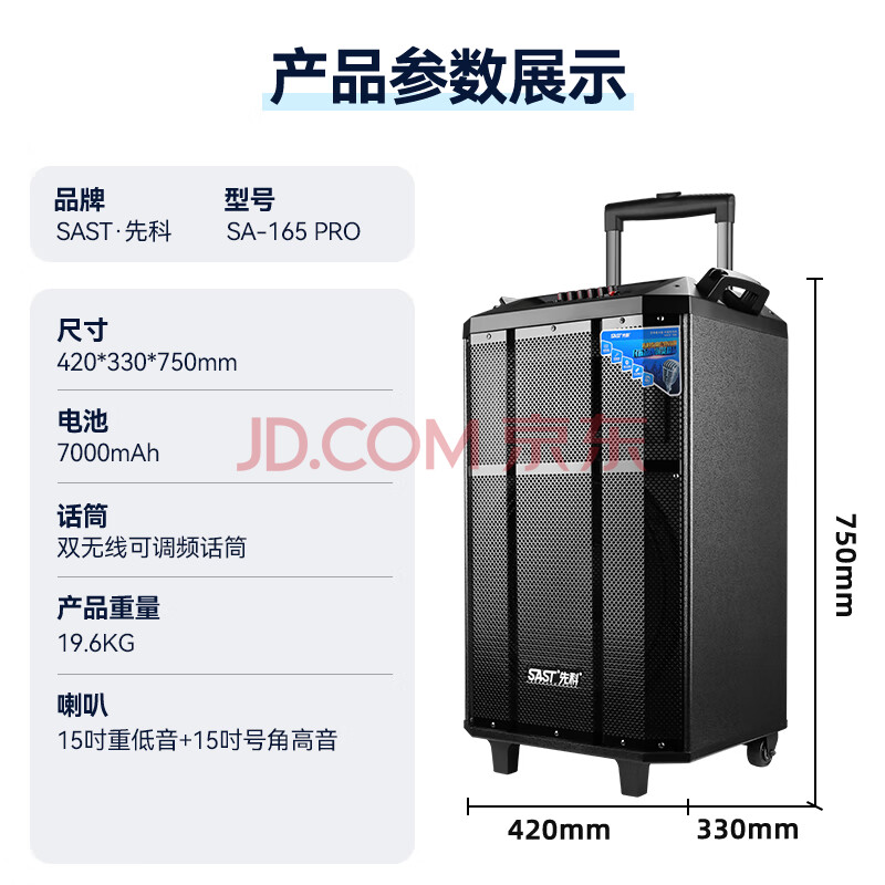 商品相册:先科音响户外广场舞专用大功率大音量移动便携拉杆音响15吋重低音唱歌高品质k歌专业设备 SA-165第